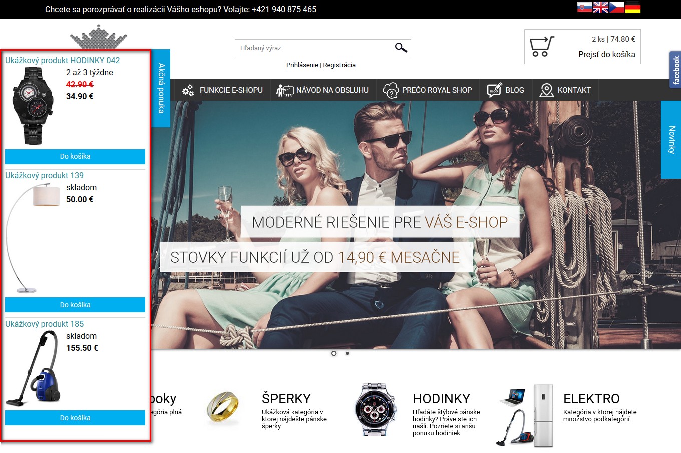 Sú to boxy, do ktorých môžete umiestniť obrázky alebo text a presmerovať ich na produkty alebo akúkoľvek inú podstránku.